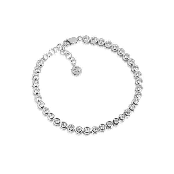 Bracelet stacking, whether with contrasting or complementary pieces, has been a long-standing trend but is now more popular than ever. Add extra sparkle with winning combinations of bracelets for any occasion. There are no rules for how to stack your bracelets, but it's recommended to mix materials, styles, and colors to create an interesting look. You can choose to stack bracelets in matching colors or opt for a more eclectic look by stacking bracelets in different colors and materials. Create your bracelet stack with 925 sterling silver bracelets in rhodium or 18-carat gold plating, featuring clean and simple designs, and mix them with bracelets adorned with zirconia stones in various colors and sizes. Add extra movement by mixing and matching flexible bracelets with solid ones. You could even go further and add a leather bracelet into the mix.
