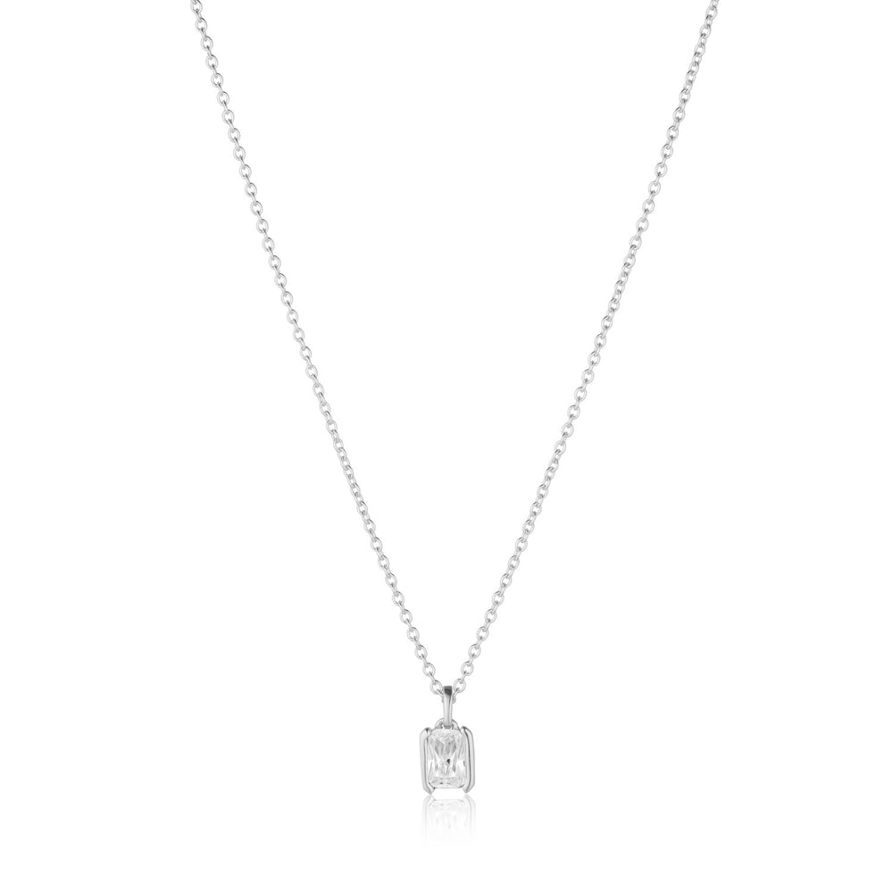 Necklace made of 925 Sterling silver with rhodium, polished surface, and hand set with emerald cut white zirconia.
