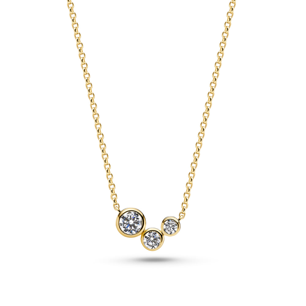 Necklace made of 18 karat gold plated 925 Sterling Silver with polished surface and handset with facet cut white zirconia.