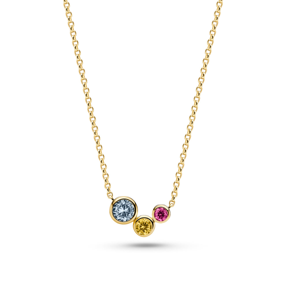 Necklace made of 18k gold plated 925 Sterling Silver, with a polished surface and handset with facet cut multicoloured zirconia.