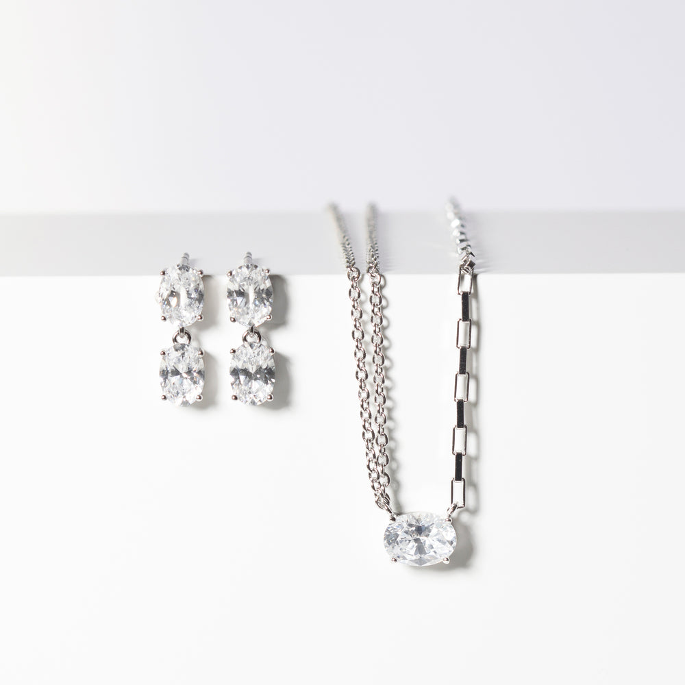 Ohrringe Ellisse Due Piccolo - mit weißen Zirkonia, Halskette Ellisse Uno - mit weißen Zirkonia
